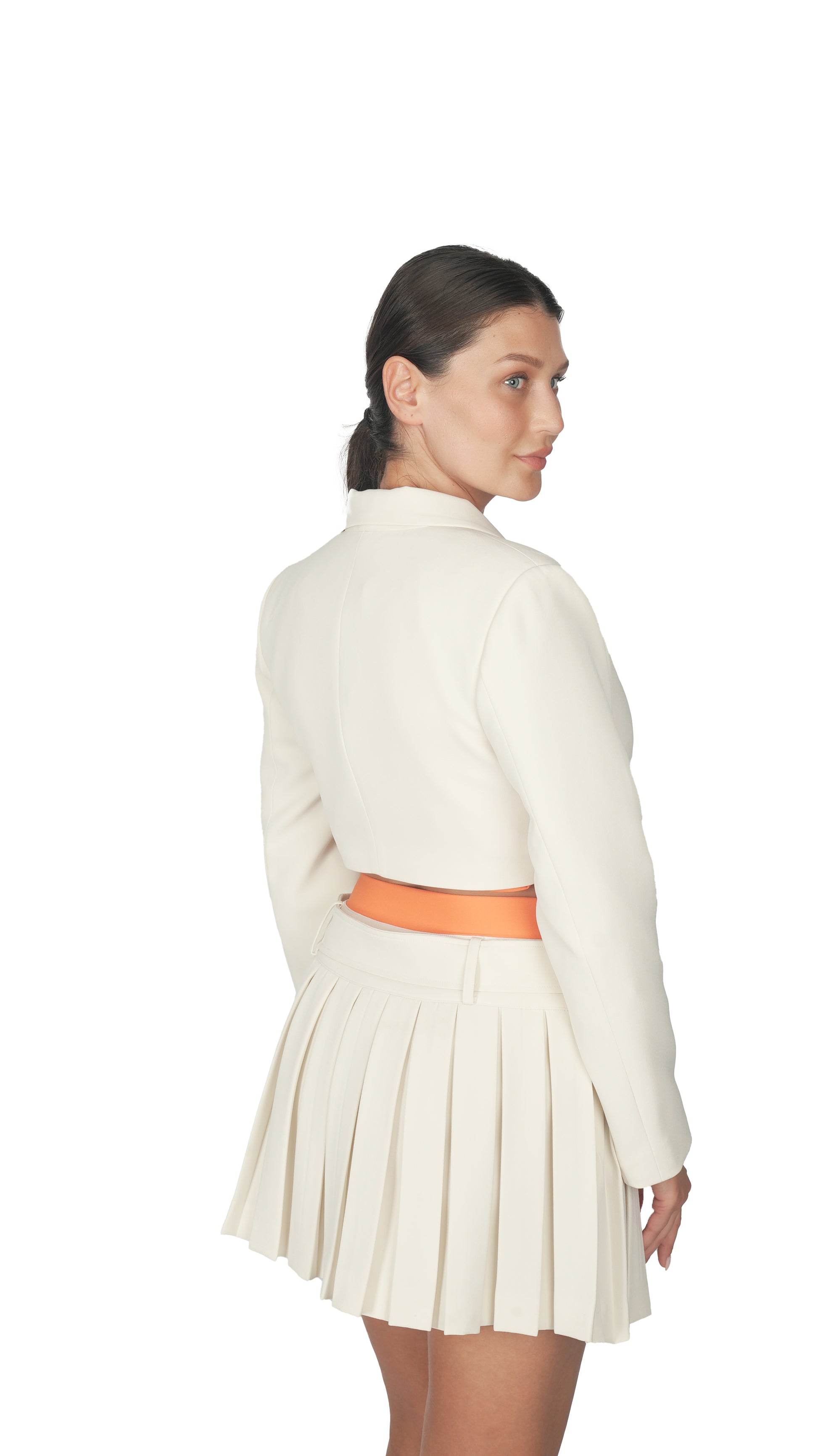 Bej Crop Blazer Ceket Etek Takım