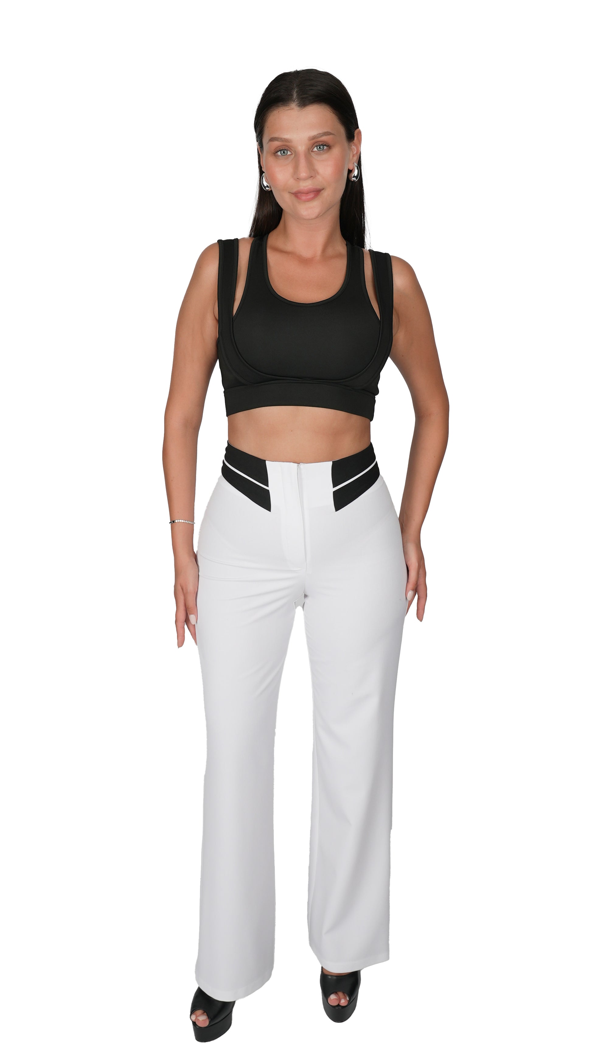 Beyaz Kalın Askılı Göğüs Dekolteli Bluz