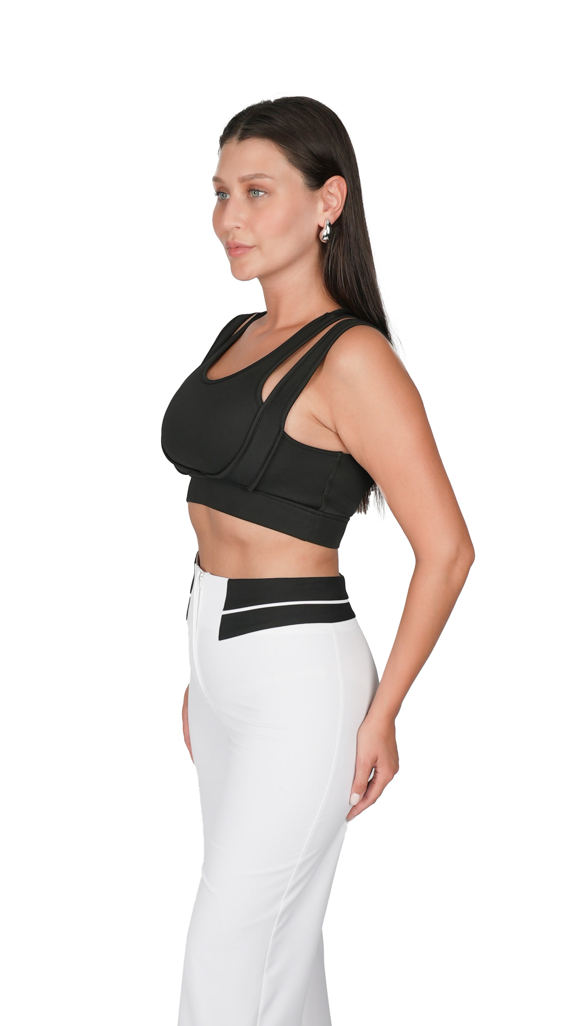 Siyah Kalın Askılı Göğüs Dekolteli Bluz