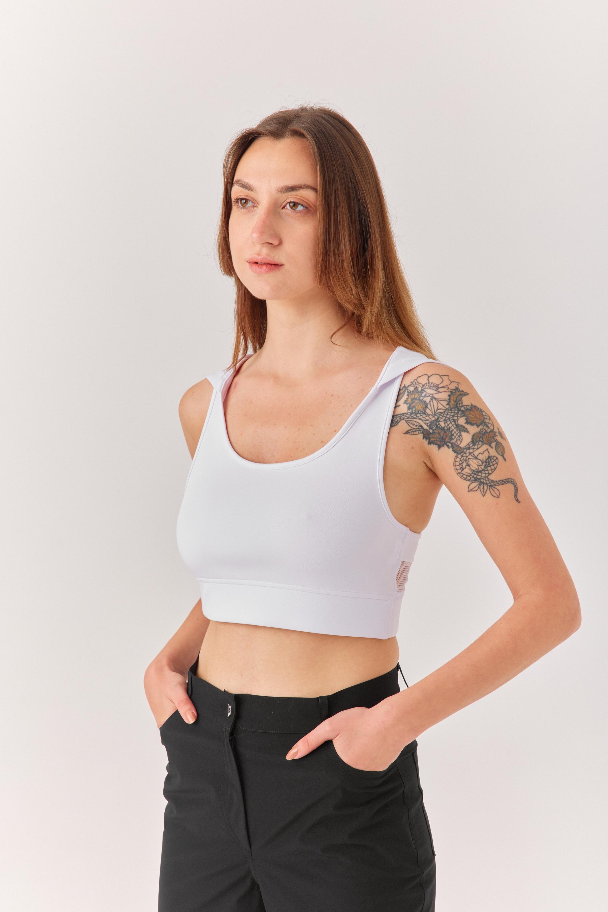 Beyaz Kalın Askılı Göğüs Dekolteli Bluz