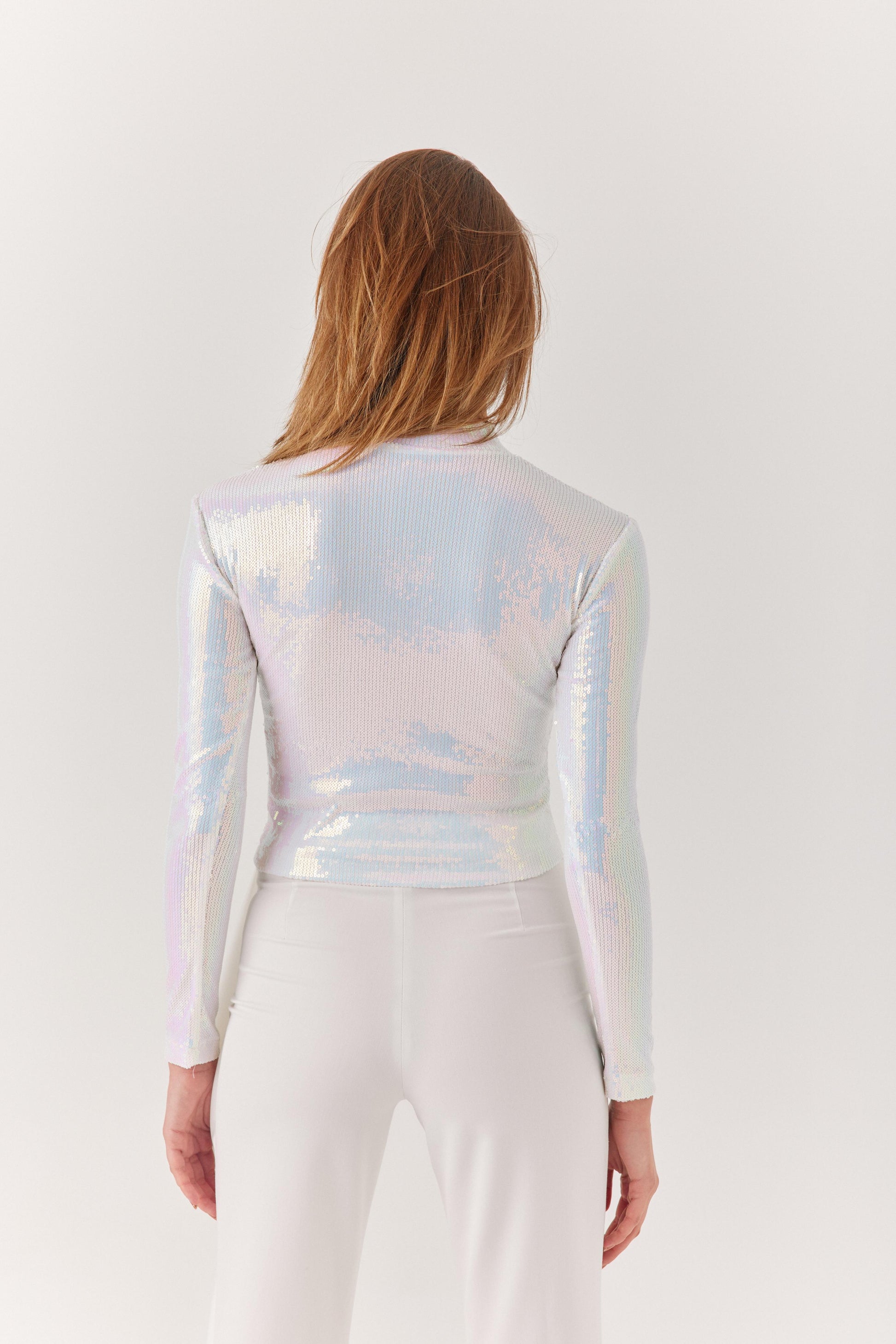 Beyaz Kalın Askılı Göğüs Dekolteli Bluz