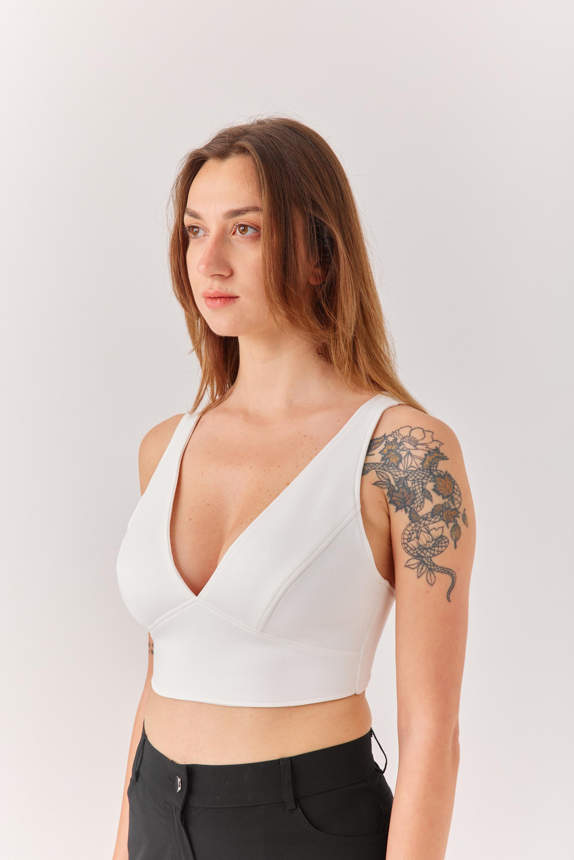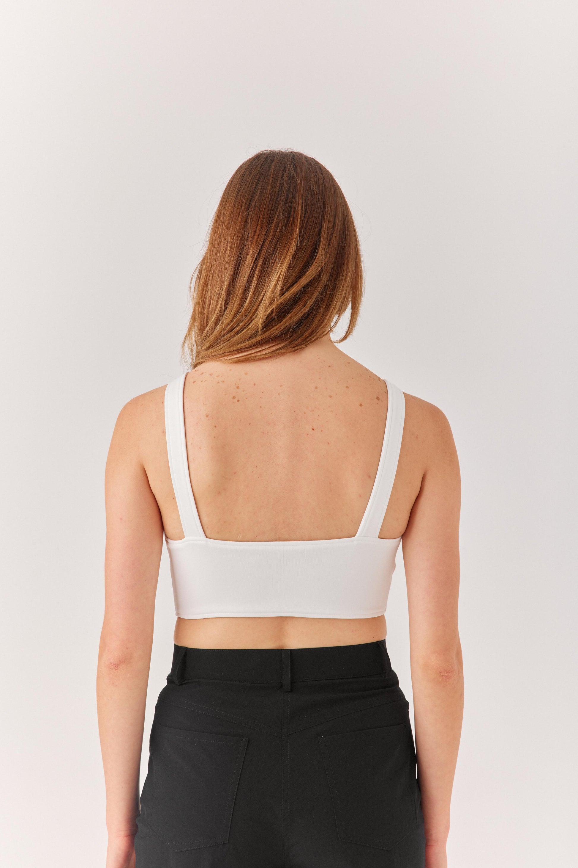 Beyaz Kalın Askılı Göğüs Dekolteli Bluz