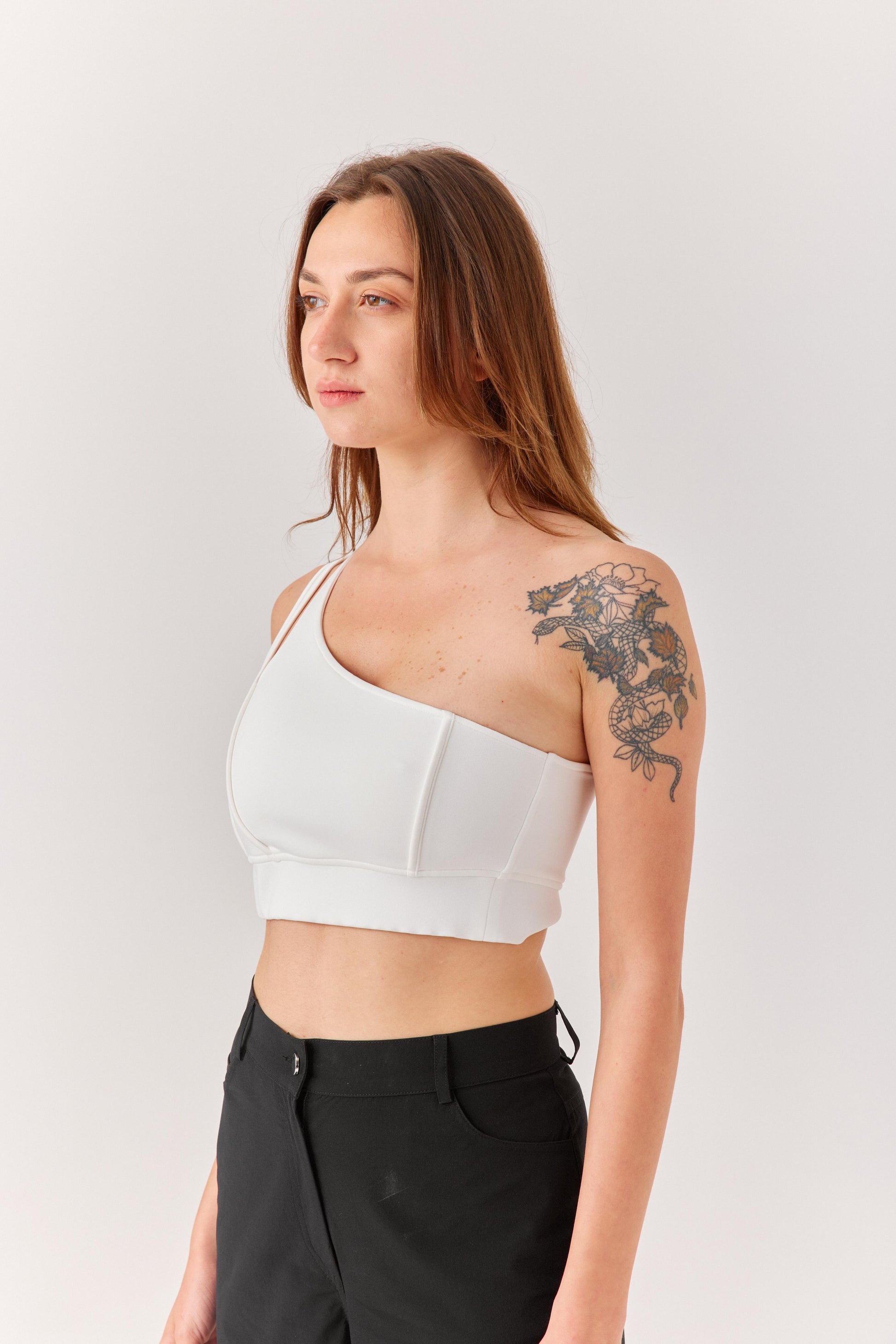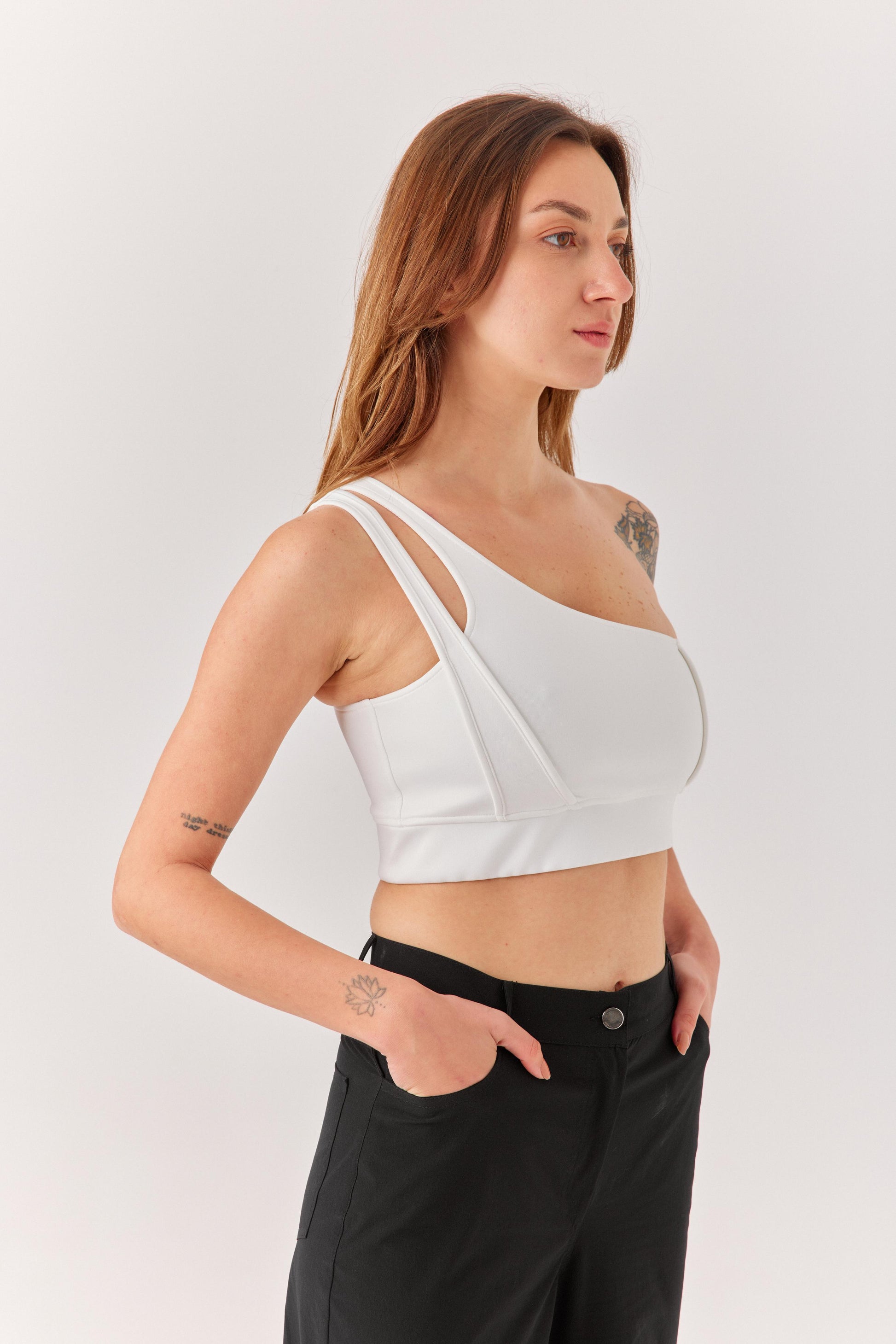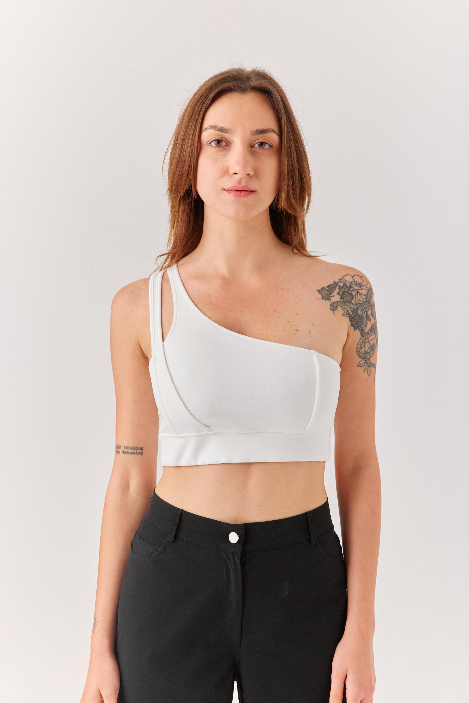Beyaz Kalın Askılı Göğüs Dekolteli Bluz