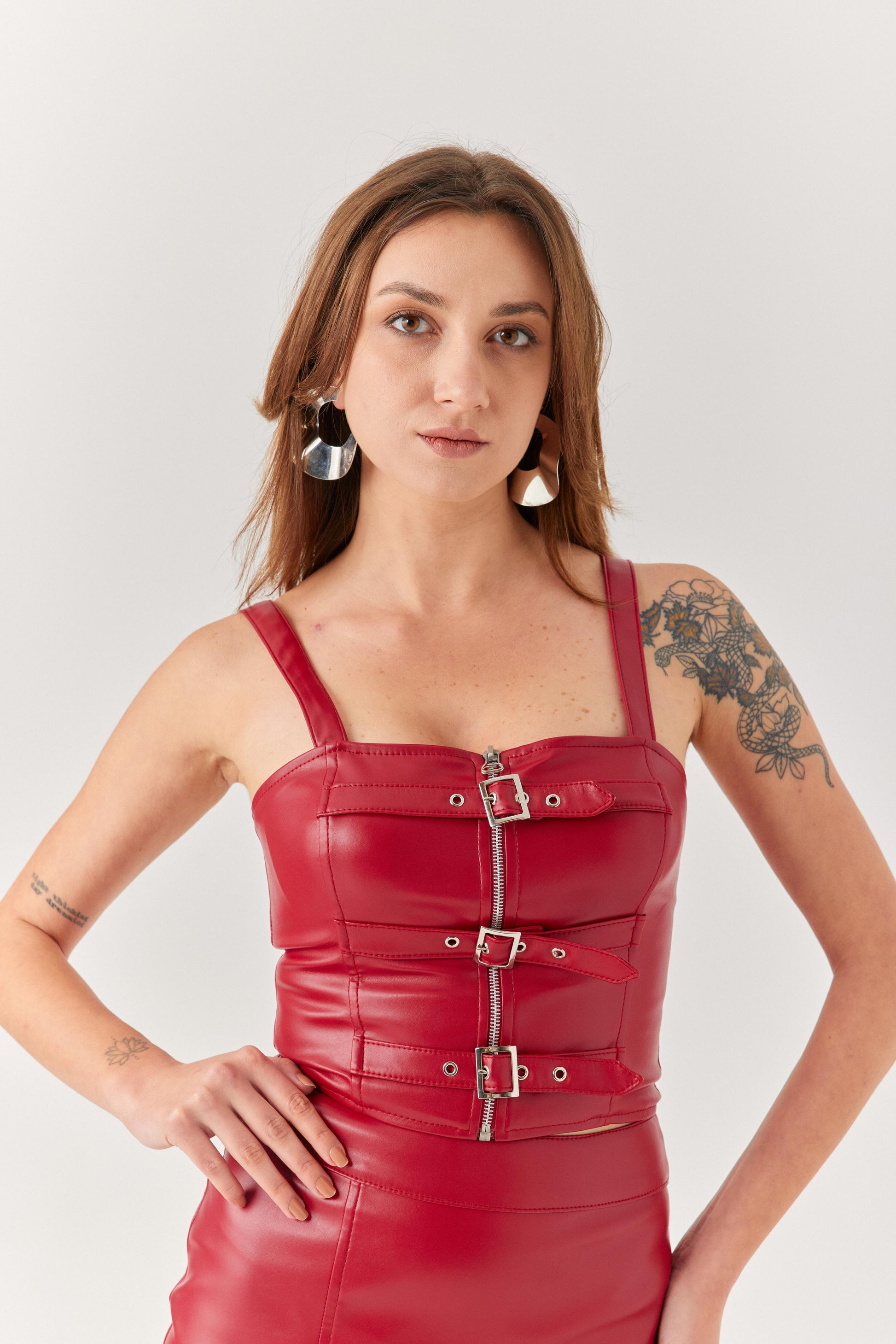 Beyaz Kalın Askılı Göğüs Dekolteli Bluz