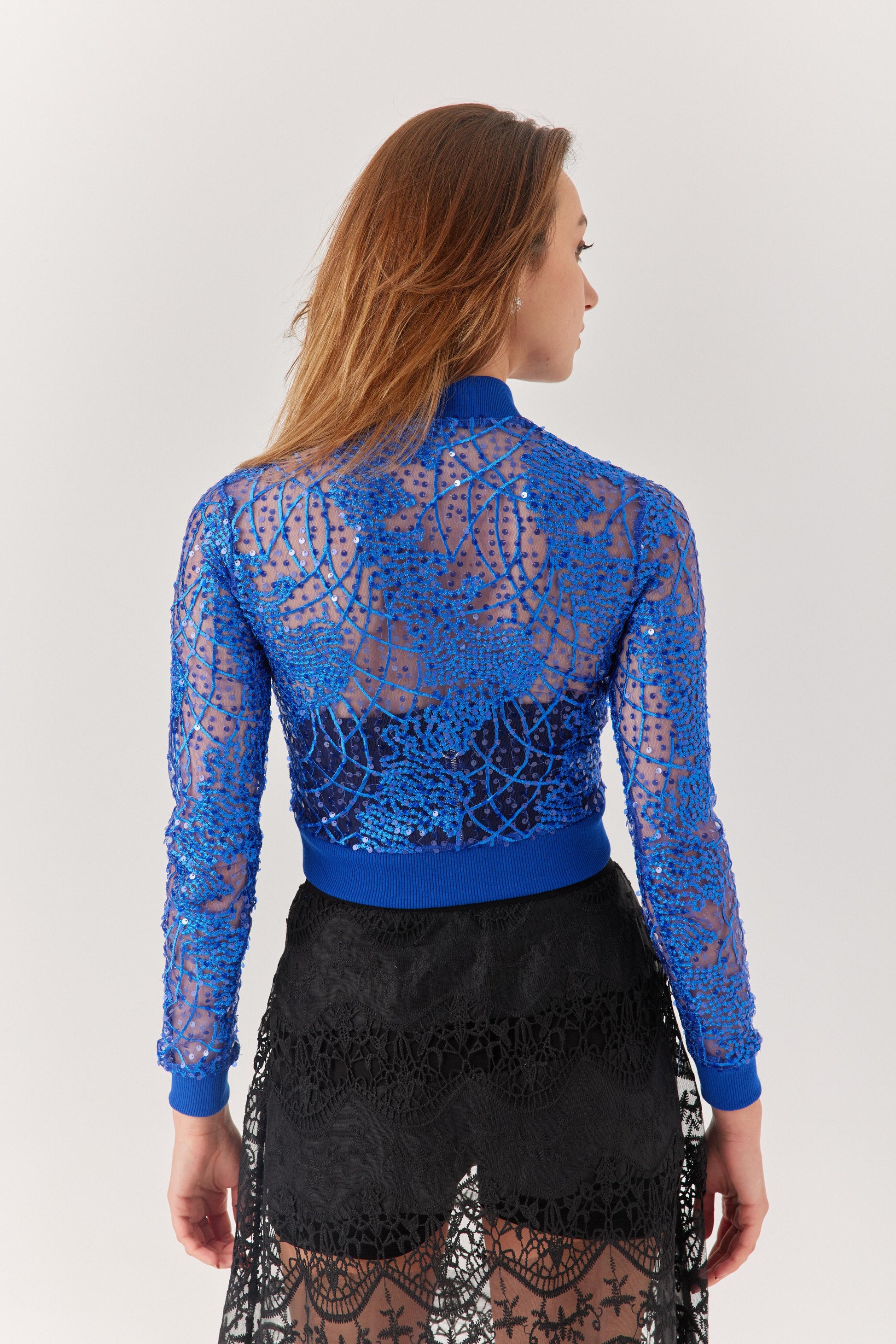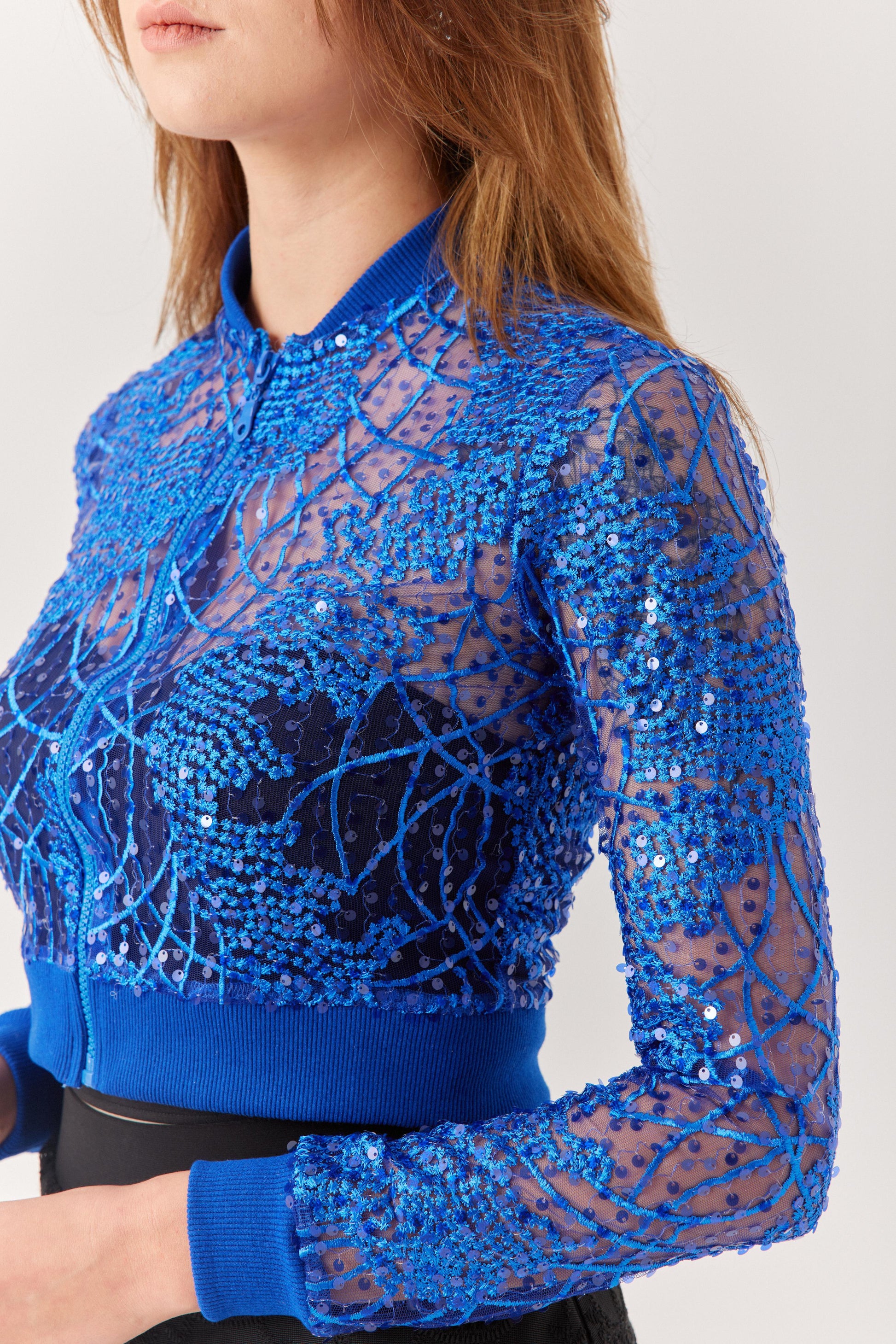 Mavi Payetli Dantel Hırka