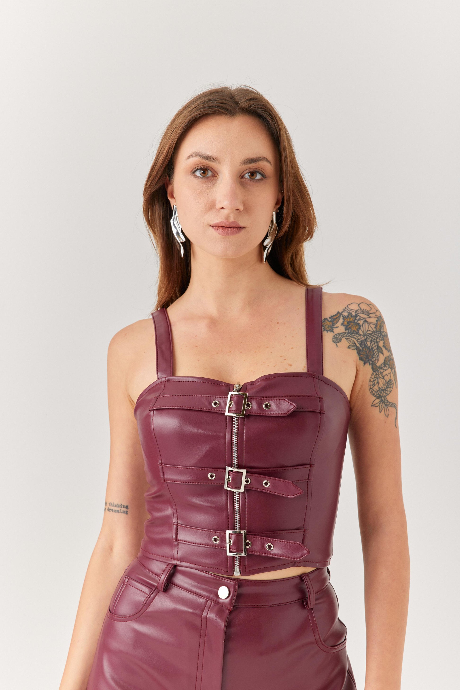 Mor Tokalı Deri Büstiyer